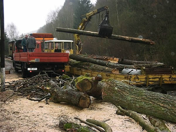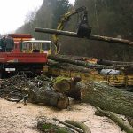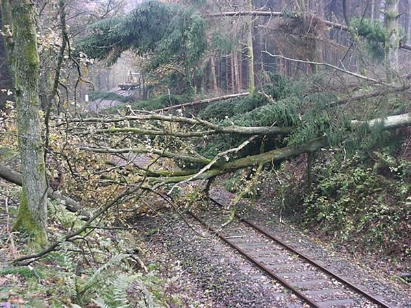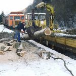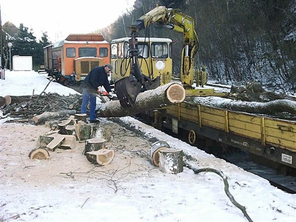 Anfang November 2002 war es mal wieder soweit. Durch die Auswirkungen des heftigen Sturmwochenendes sowie die wenigen (Naß-) Schneetage Anfang diesen Jahres kam es auf der Strecke der Schleifkottenbahn wieder zu einigen die Gleistrasse blockierenden Baumumstürzen. Mit Unterstützung der mittlerweile zahlreich durch die SKB aquirierten Holzverbraucher/-abholer konnte die Strecke wieder recht zügig durchgängig befahrbar gemacht und das angefallene Bruchholz zudem einer nützlichen Verwendung zugeführt werden. Die angefallenen Festmeter Holz konnten den Abholern durch deren erbrachte Eigenleistung auf diese Weise vergleichsweise günstig zur Verfügung gestellt werden. Bei Interesse an unseren Bruchhölzern (ggf. eigener Kettensäge und vielleicht zu Hause offenem Kamin 🙂 können Auskünfte unter der Info-Emailadresse bei uns schriftlich angefordert werden.
