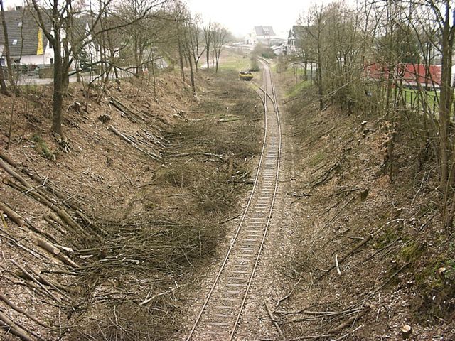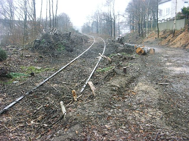 Was lange währt, wird endlich gut… Die Umgestaltung des Bahnhofsbereichs Halver und somit der umfangreichen Gleisanlagen haben begonnen. Nachdem die Stadt Halver zur Jahreswende 2005/2006 die dafür wichtigen Geländeteile von der Deutschen Bahn käuflich erworben hat (PM 23.12.2005), können nun auch endlich mit entsprechender Planungssicherheit für alle Beteiligten die damit einhergehenden Umgestaltungsmaßnahmen der Gleisanlagen Halvers anlaufen. Nachdem auf Initiative und unter nennenswerter Beteiligung des Bauhofes der Stadt Halver intensive ‚Vegetationspflege‘ und somit umfangreiche Freischnittmaßnahmen im Bereich Tannenweg, Südstraße bis Katrineholmweg und nicht zuletzt durch die Schleifkottenbahn im Bereich Frankfurter bzw Remscheider Straße an den an das Bahngelände grenzenden Flächen erfolgten, werden in der zeitlichen Folge Umbauarbeiten an den bestehenden Gleisanlagen durchgeführt. Begonnen haben die Gleisumbauten mit den nachfolgend illustriert dargestellten vorbereitenden Maßnahmen: