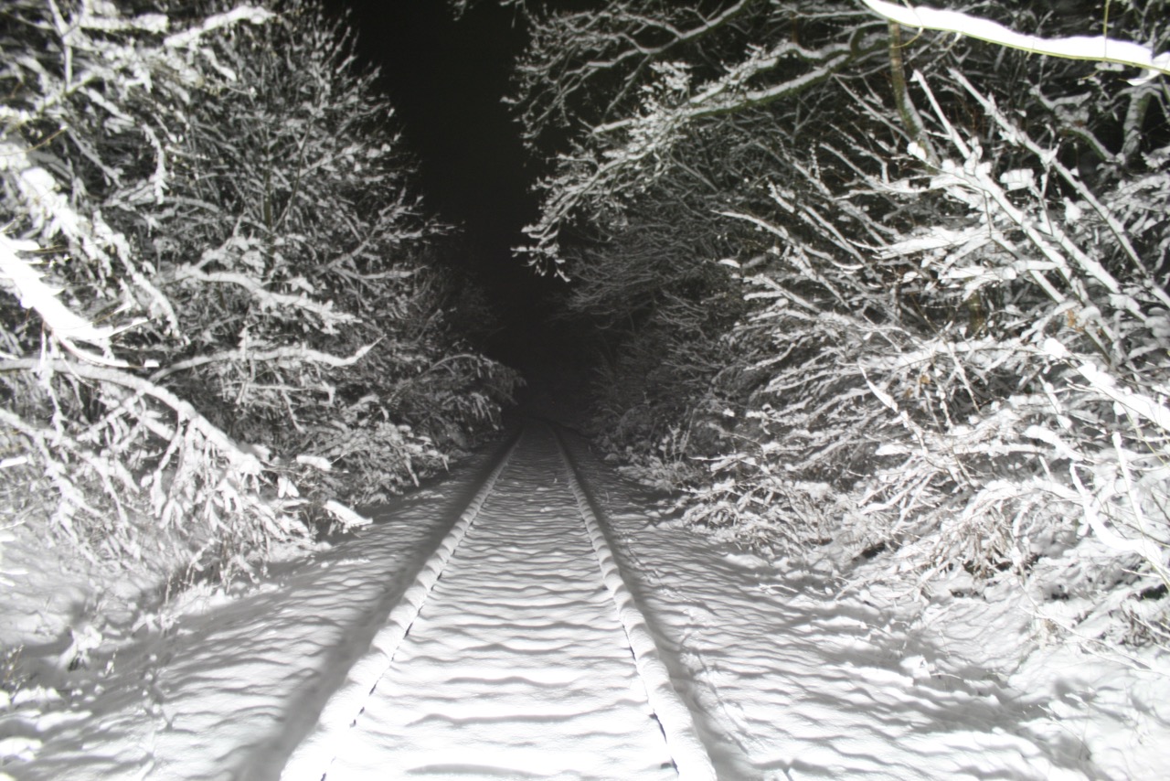 Ausgeleuchtet und aufgenommen wurden diese Bilder mit Hilfe einer Fahrraddraisine mit Spezialausrüstung: